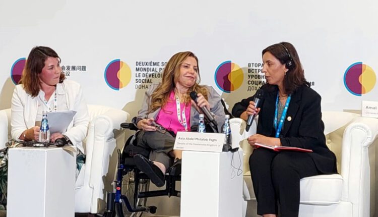 شاركت رئيسة لجنة الأشخاص ذوي الإعاقة في مجلس الأعيان، العين آسيا ياغي، في حفل اختتام أعمال القمة العالمية الثانية للتنمية الاجتماعية التي استضافتها الدوحة على مدى 3 أيام.