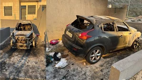 كما أضرم مستوطنون، فجر اليوم، النار في مركبتين وكتبوا شعارات عنصرية، خلال هجومهم على قرية الطيبة شرق رام الله.